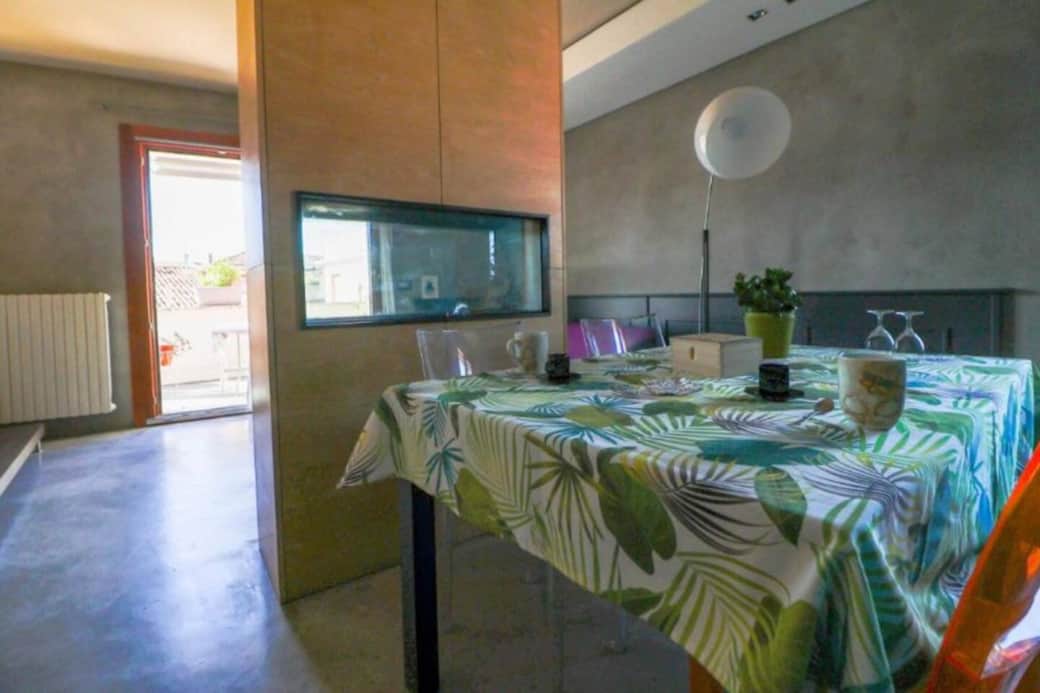 Appartamento con uno stile unico e grande terrazza sui tetti nel centro di Desenzano del Garda.